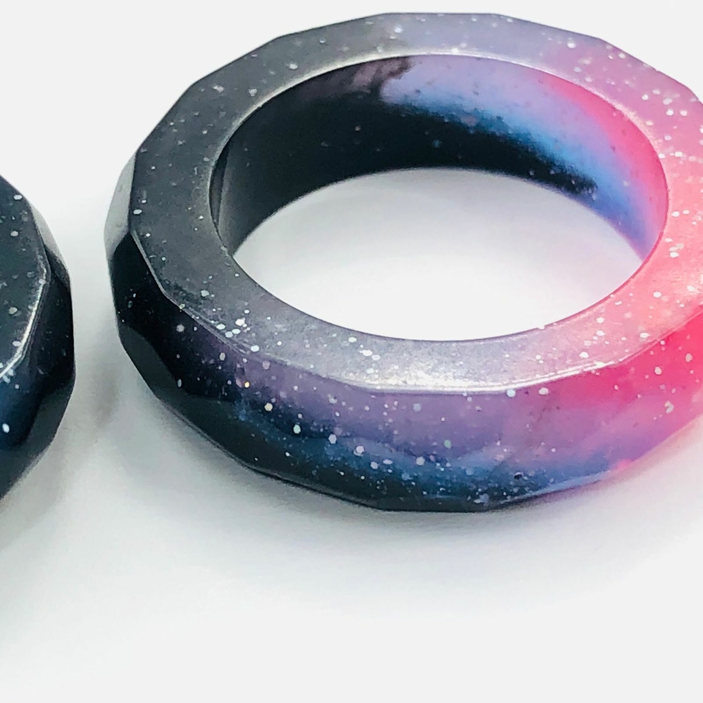 Anel nebulosa em resina (Brilha no escuro) com formato abaulado
