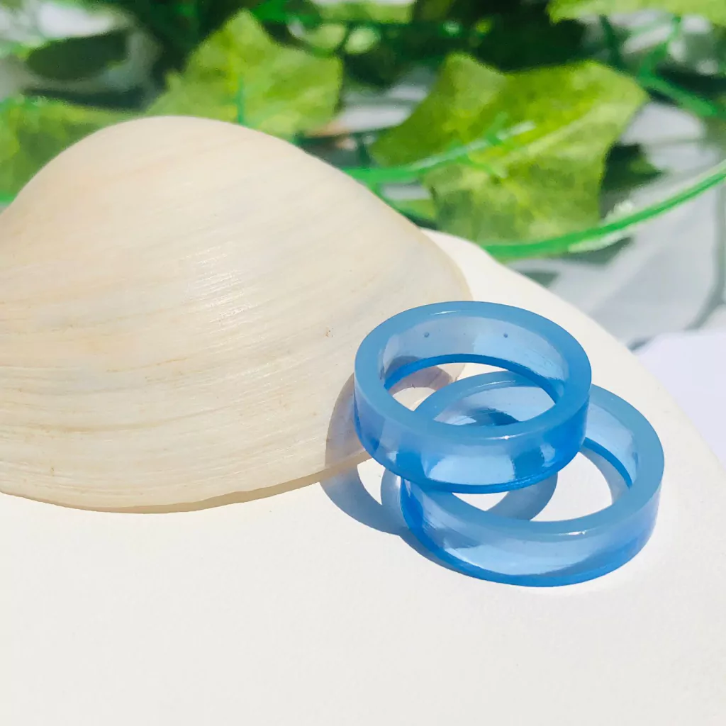 O Anel Oceano faz parte da Coleção Mar, é feito de resina azul translúcida que captura a beleza e profundidade do oceano. A sua borda brilha no escuro, criando um efeito hipnotizante que lembra a bioluminescência das águas marinhas ♥