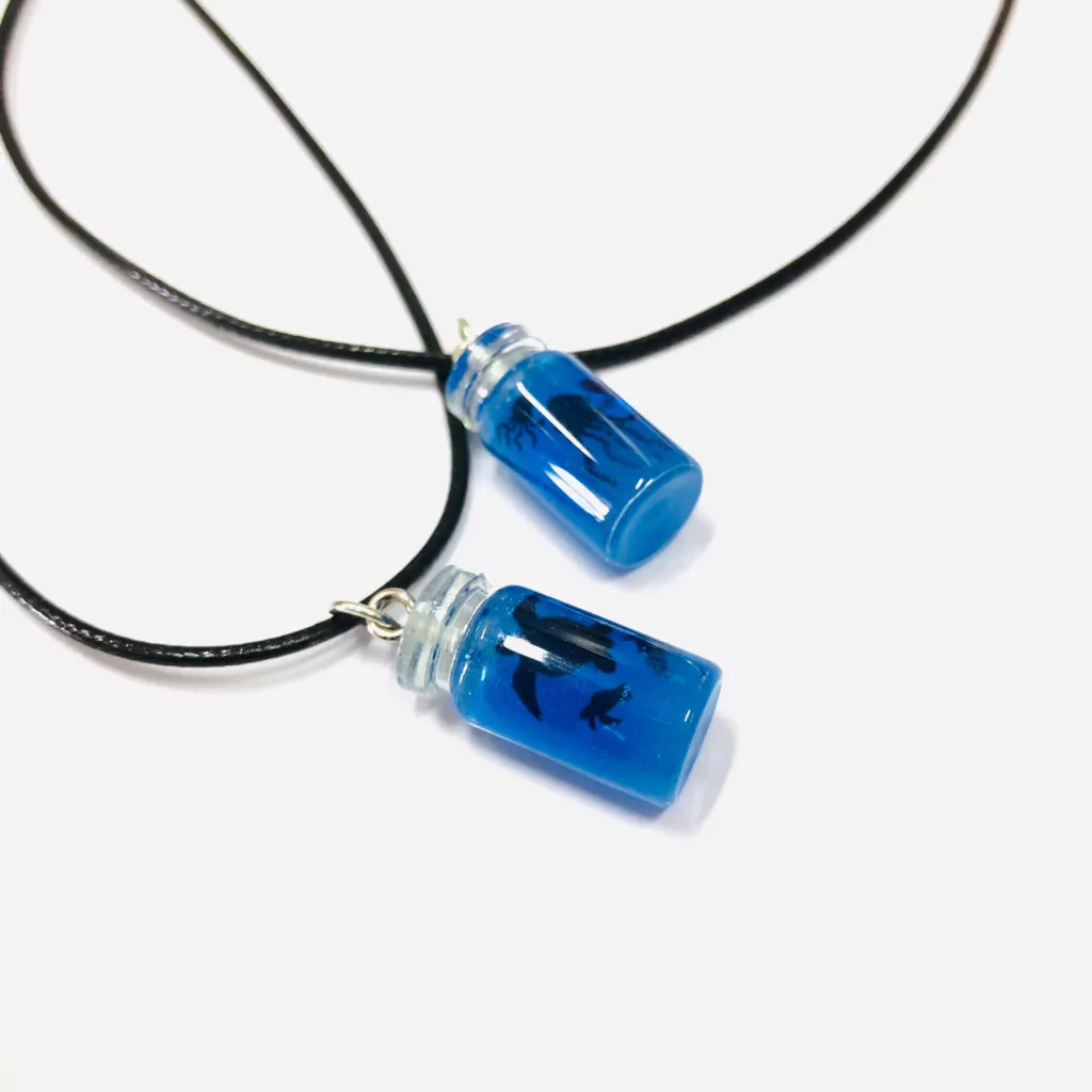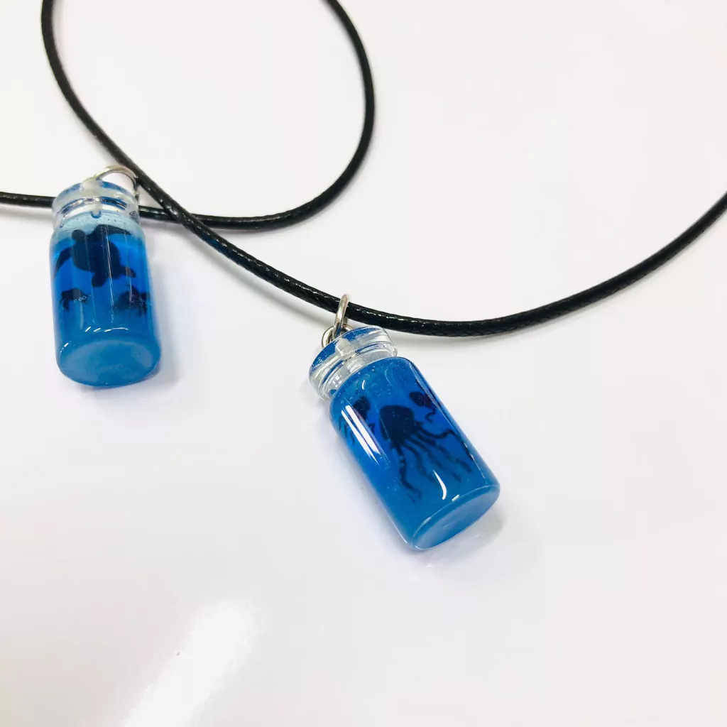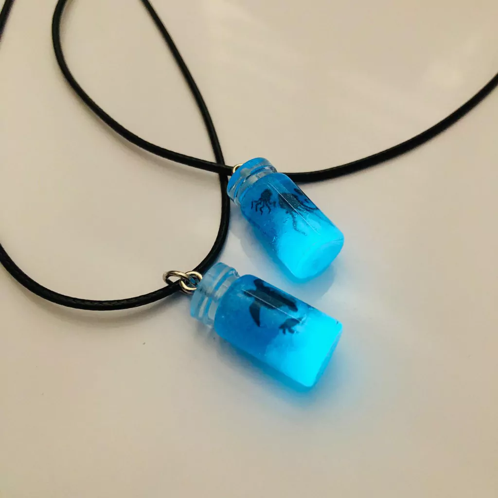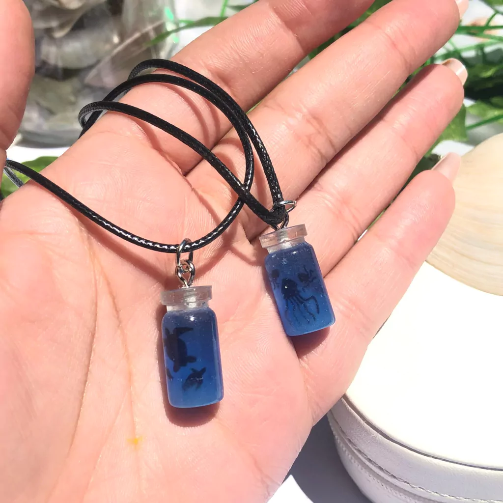 Tenha um pedacinho do oceano com você em todos os momentos! O Colar Potinho de Oceano faz parte da Coleção Mar, é feito de resina com desenhos de águas-vivas e tartarugas, que ficam mais evidentes quando o colar brilha no escuro ♥